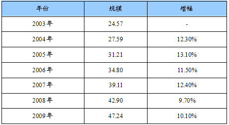 2003-2009年全球离心式空气压缩机产业规模及增长