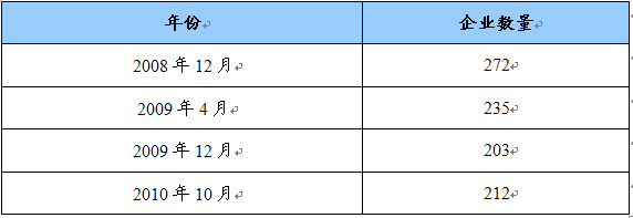 2008-2010年中国规模以上烧碱生产企业数量变化 单位:个