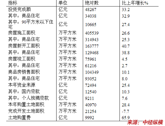 全年房地产开发投资48267亿元,比上年增长33.2%。其中,商品住宅投资34038亿元,增长32.9%;办公楼投资1807亿元,增长31.2%;商业营业用房投资5599亿元,增长33.9%。全年各类保障性住房和棚户区改造住房开工590万套,基本建成370万套。