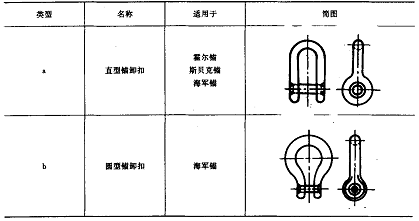 本标准规定了锚卸扣的产品分类、型式尺寸和重量。本标准适用于各类锚和锚索(链条、钢索或纤维索)连接用的锚卸扣。本标准与1995年5月1日起实施。具体内容如下: