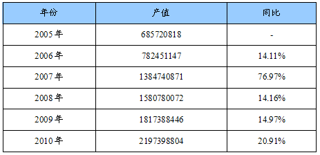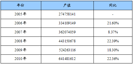 2005-2010年下游 行业 水泥产值增长情况统计表