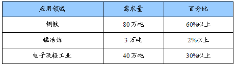 超高锰钢上游主要原材料电解锰应用领域需求量统计表