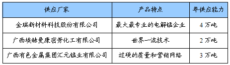 超高锰钢上游主要原材料电解锰供应厂家情况统计表