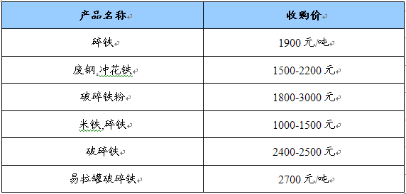碎铁主要产品社会收购价