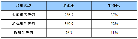 等离子焊接机上游主要原材料1(不锈钢)应用领域需求量统计表