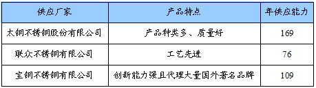 等离子焊接机上游主要原材料1(不锈钢)供应厂家情况统计表