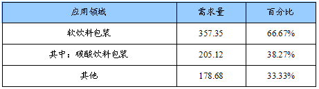 等离子焊接机上游主要原材料2(PET)应用领域需求量统计表