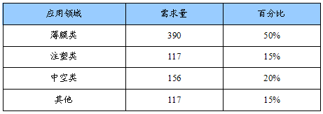 等离子焊接机上游主要原材料3(PE)应用领域需求量统计表
