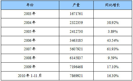 从我国高压往复泵的发展看,经过了2004-2007年四年的高速发展后,2008年增速回落,这在一定程度上受到金融危机的影响,下游需求下降,2009年增速逐渐恢复,2010年达到15%以上;从分布看,华东仍然是高压往复泵的主要生产区域,占总产量的80%以上,分布不均衡;预计今后几年高压往复泵的产量将保持较为平稳的增长,增速在8%-以上。