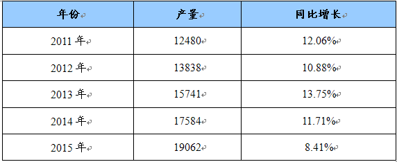 2011-2015年抢险救援车产量及同比增长预测表 单位:辆