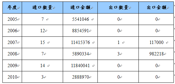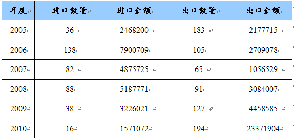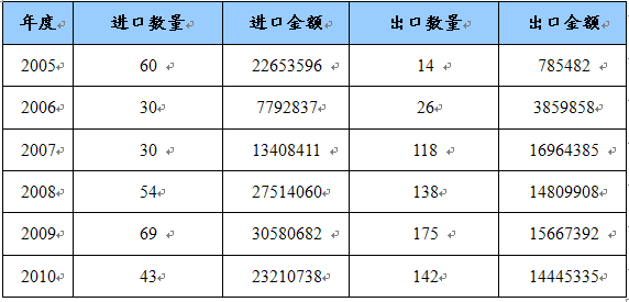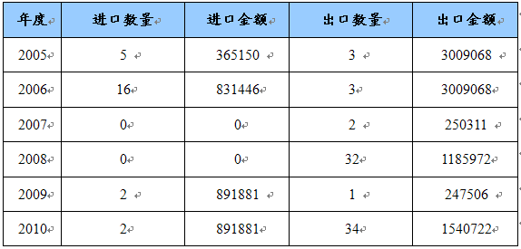 2005-2010年机动医疗车进出口数据统计 单位:辆