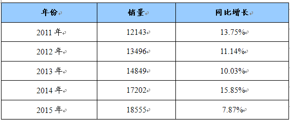 2011-2015年抢险救援车销量及同比增长预测表 单位:辆