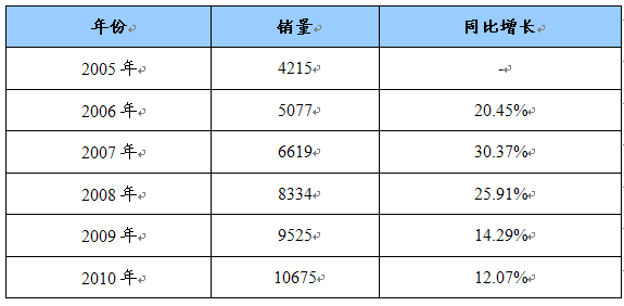 2005-2010年抢险救援车销量及同比增长统计表 单位:辆