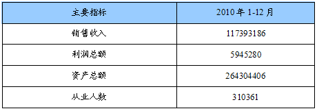 2010年1-12月全国规模以上航空航天器制造 行业 企业数量为225家,航空航天器制造 行业 资产合计264304406千元,同比增加10.93%;实现销售收入117393186千元,同比增加12.55%;完成利润总额5945280千元,比上年同期增加1329427千元,同比增加28.80%; 行业 整体从业人数310361人,同比减少1.01%。