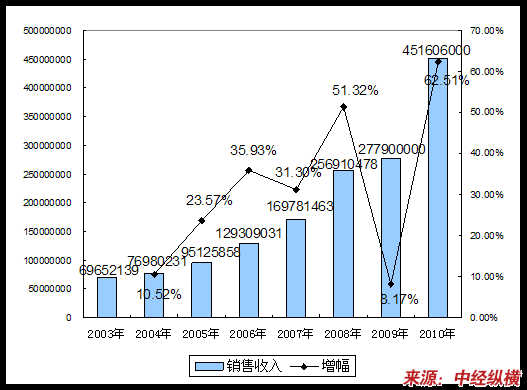 由数据可以看出,03-10年我国接触/非接触双界面卡产品所属 行业 市场整体增长速度很快,虽然08-09年有所下降。我国加大基础 行业 投资投入,所以缓慢速增长起来,以及 行业 振兴计划的出台,未来几年我国接触/非接触双界面卡产品所属 行业 仍将保持快速增长。