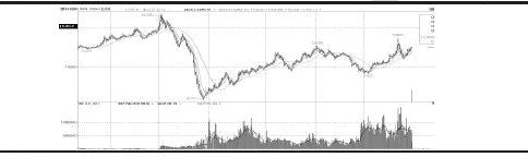 最近几个月,PVC期货价格走了一个波段。2010年12月7日,PVC期货价格在7910元/吨附近止跌之后开始上涨,到2010年12月30日,PVC期货价格涨到8595元/吨,然后形成一个箱体,开始震荡。2011年2月22日起开始向上突破,成交量和持仓量大增,似有一发不可收拾的形势。不过,在2011年2月28日至3月4日,PVC期货价格历经了一周下跌,跌至7910元/吨附近,形成了一个下引线很长的星线,似乎有止跌迹象。