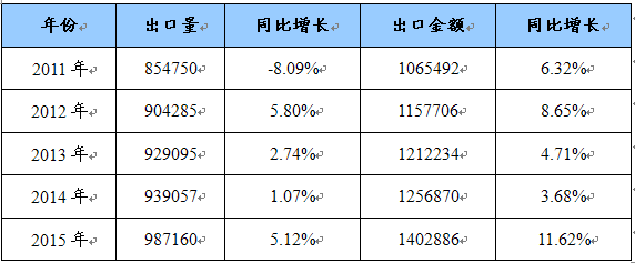 第八节 2011-2015年粗布产品进出口变化趋势 分析