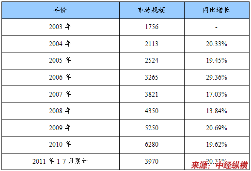 2003-2011年中国水中油紫外荧光检测器市场规模