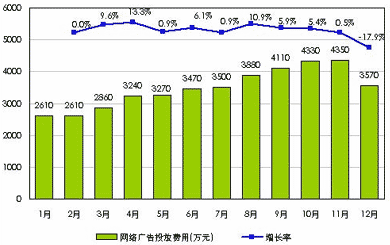 2005年各月房产网络广告投放费用中,下半年的投放费用较大,在11月更是达到了2005全年中各月房产网络广告投放费用的峰值。9、10、11月是传统的房地产销售网季,房地产商的网络广告投入达到历史新高,但销售数量并未出现增长。