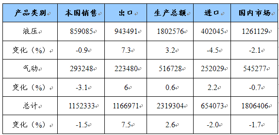3、国内液压总销售额78.23亿美元、气动总销售额27.38亿美元。