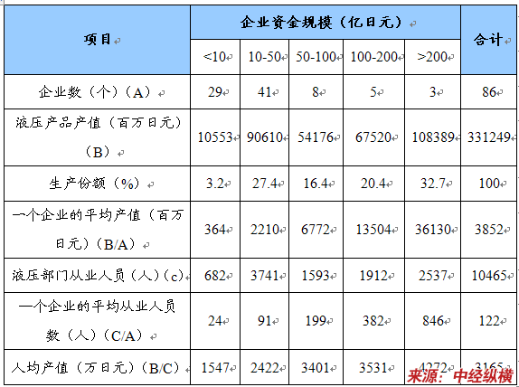 根据日本流体动力工业会统计资料,按企业资金拥有量及其销售额的经营情况进行了 分析 。