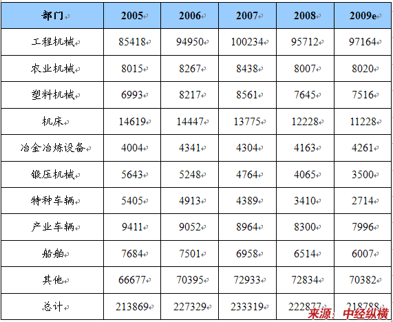 液压使用率是指液压件产值对应主机产值的比,工程机械的液压使用率位居首位为8.6%,锻压机械为6.1%,塑料机械为4.6%,冶金、冶炼设备为4.0%,产业车辆3.9%,机床2.6%,农业机械1.5%,特种车辆0.5%。据 分析 显示,工程机械和农业机械的液压使用率有上升趋势,其他机械则呈下降趋势,主要由于一般液压产品的价格与主机价格相比已无优势,而电气、电子技术的发展,使机床与塑机等部门液压传动已被电传动所取代,至于农机和工程机械由于操作性能和舒适性的提高,用户强化了主机性能从而使液压使用率有所增长。