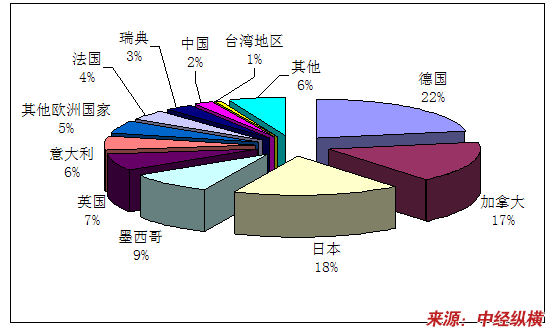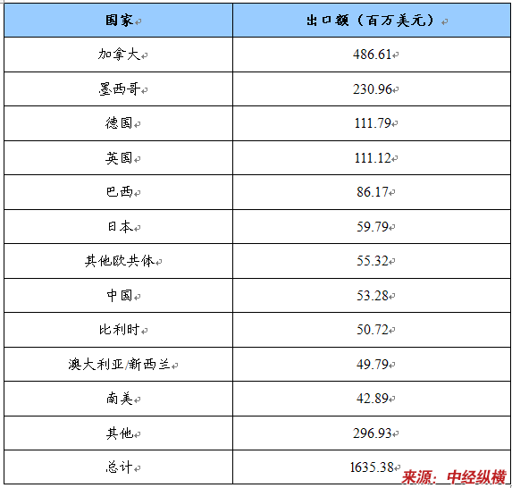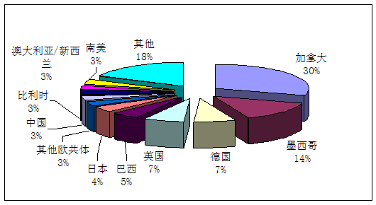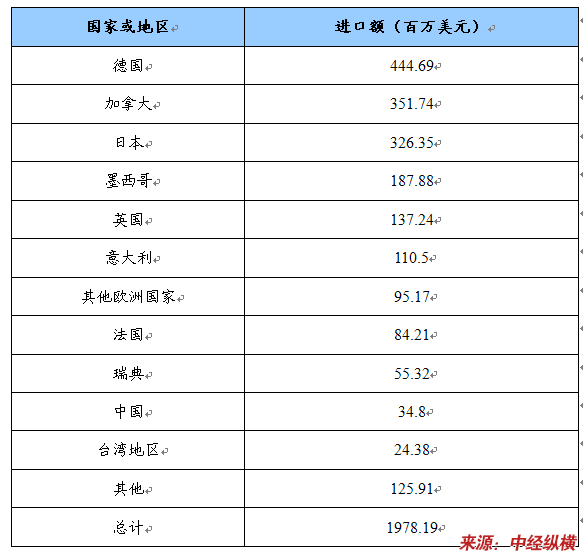 美国流体动力 行业 重视国外市场的开发,进口额为19.8亿美元,出口额为16亿美元,进口大于出口。