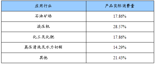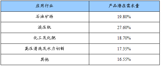高压往复泵的应用领域较多,在石化、环保领域的领用正在逐渐增加,截止目前为止,该产品的需求持续稳定增长,预计在石化产业较快发展、环保应用需求快速增加的市场环境下,高压往复泵的需求将在未来几年保持持续稳定的增长,具有较好的市场空间。