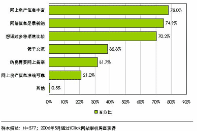 | 样本描述:买房网民N=248,租房网民N=65;2006年5月通过iClick网站联机调查获得 | ||