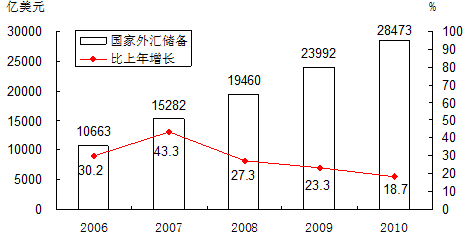 年末国家外汇储备28473亿美元,比上年末增加4481亿美元。年末人民币汇率为1美元兑6.6227元人民币,比上年末升值3.0%。