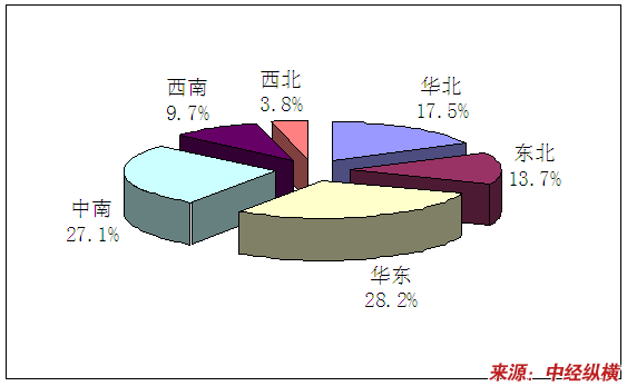 汽车方向盘主要是为整车服务的,所以汽车方向盘的主要市场也就是大型汽车制造厂的集中地。从2009年的产区分布看,我国汽车主要产区分布在华东、中南以及华北。