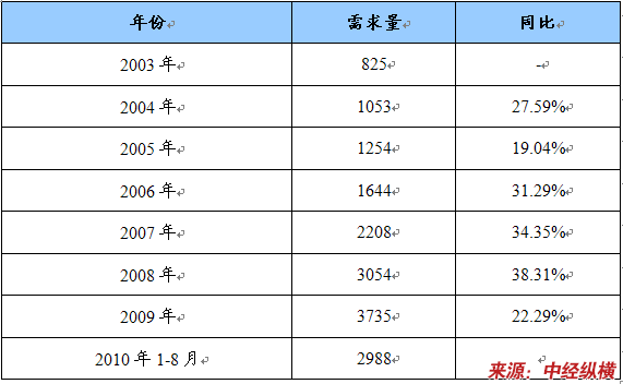 主要产品需求量增长情况