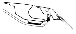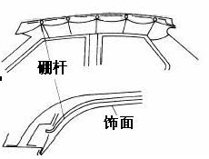 吊挂软顶的结构见图所示。软顶饰面的背面缝有几行吊挂用的布袋或细绳,并同时配备软顶安装用细杆,该细杆弯曲成与金属顶盖断面相似的曲线。安装时,先将细杆穿过软顶背面的布袋,再将这些细杆固定在顶盖横梁上。饰面的周边用粘接剂粘到内护板和前风窗胶条上。