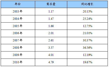 2003-2010年中国塑料网片需求量及增长