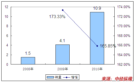 进入2011年,GLII预估LED荧光粉的市场需求量将进一步提升至18.5吨,同比增长70%,国际知名LED荧光粉企业日本日亚、日本三菱由于在中国还基本没有销售,预计很快也会进入中国,德国默克今年也已经进入中国销售,目前销量非常小,随着国际知名企业销售展开,预计中国LED荧光粉的销量增长迅速,进入2012年销量日渐平稳,增长率也保持在两位数增长。