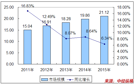 2011-2015年中国体育场馆座椅市场规模预测图 单位:亿元