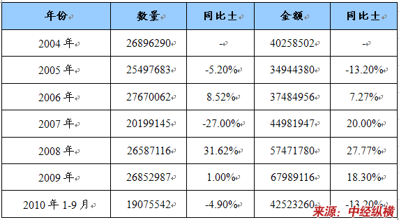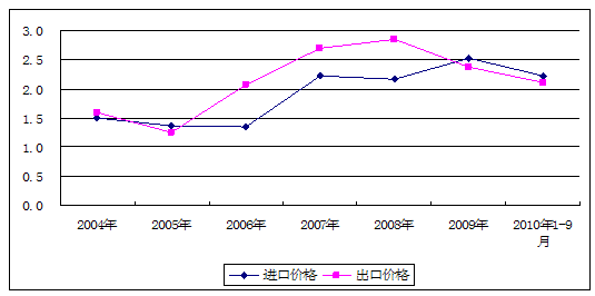 2004-2010年球罐产品进出口价格比较 单位:美元/千克