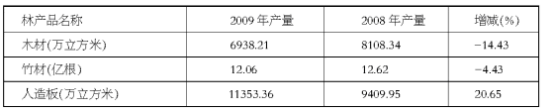 2009年木材、竹材产量下降的主要原因是受2008年地震灾害和雨雪冰冻灾害的影响。