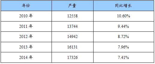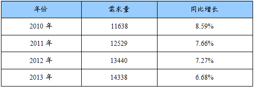 2010-2014年等离子焊接机需求量及同比增长预测表
