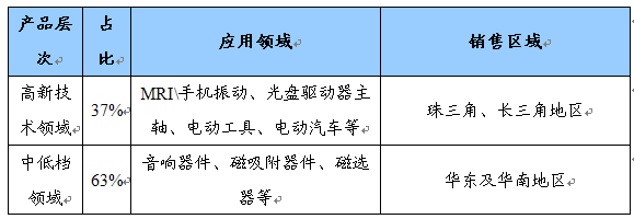 新产品主要是高性能钕铁硼永磁材料,可广泛应用于风力发电、节能电梯、节能环保空调、新能源汽车、EPS、节能石油抽油机和消费类电子产品等诸多领域,市场前景非常广阔。近年来,在风力发电等 行业 高速发展的带动下,高性能钕铁硼永磁材料 行业 取得了快速发展。预计新产品销售区域主要分布在风电产业密集地区。