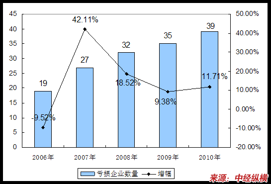 第二节 2006-2010年 行业 亏损企业数量状况
