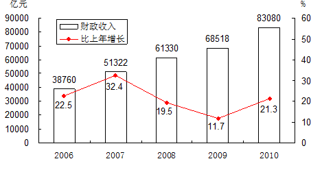 全年财政收入83080亿元,比上年增加14562亿元,增长21.3%;其中税收收入73202亿元,增加13680亿元,增长23.0%。