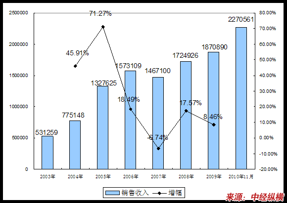 第六节 2003-2010年年 行业 销售收入发展状况