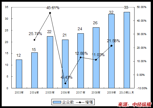 第八节 2003-2010年年 行业 企业数量发展状况