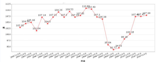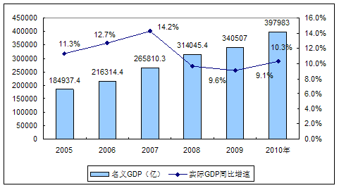 2005年-2010年我国GDP增长变化图