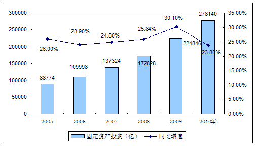 2005-2010年我国全社会固定资产投资情况