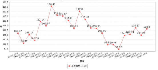 2005-2010年全国木材季度价格指数统计图