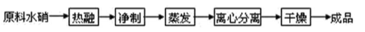 原料水硝后,经热融、净制、蒸发后,离心分离,最后干燥得到成品。此法将末效二次蒸汽用来化硝,降低能耗。同时使各效间存在压差,不需额外动力,减少了不必要的工序。此外化硝减少了开口蒸发的蒸汽损失,操作环境好,利于减少M g 杂质量。