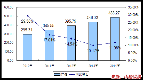 按照生命周期理论,中高档家具已经进入发展期向成熟期过渡阶段,因此预计未来增长速度和前几年相比相对较为缓慢,预测的公式模型为: