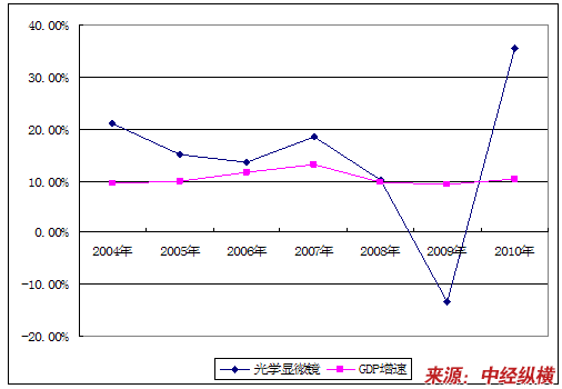 2003-2010年光学显微镜产业与宏观经济周期相关性